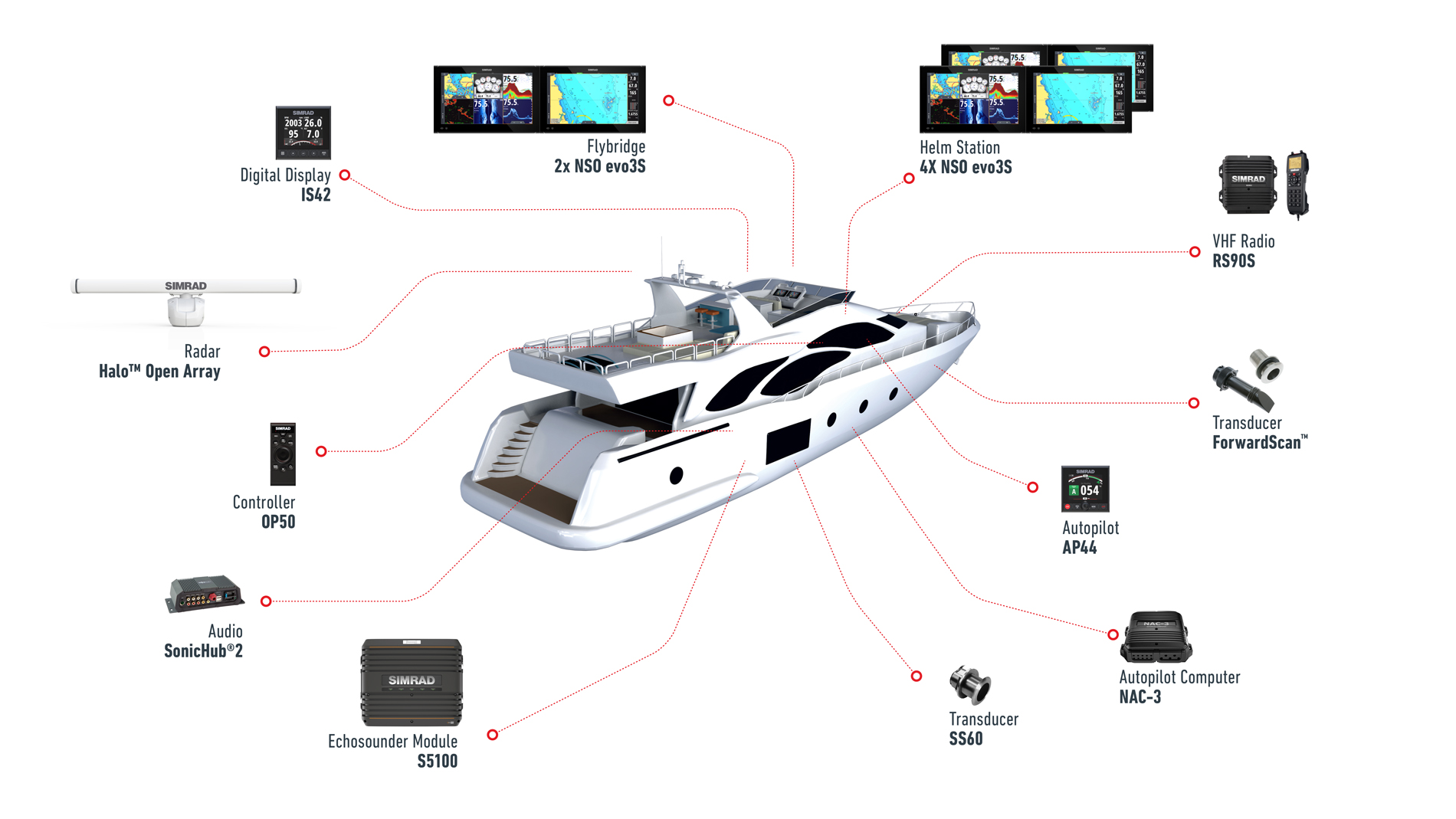 Существует Simrad® MFD, способный удовлетворить потребности любого судна: от самых маленьких моторных лодок, где один экран управляет основными функциями, до суперяхт, где на мостике обычно используется множество экранов.