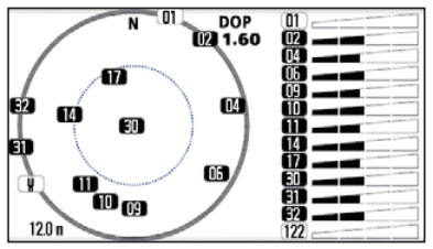 В этом режиме отображается состояние приема GPS, положение судна по широте и долготе, скорость относительно земли, курс относительно земли, дата и время.