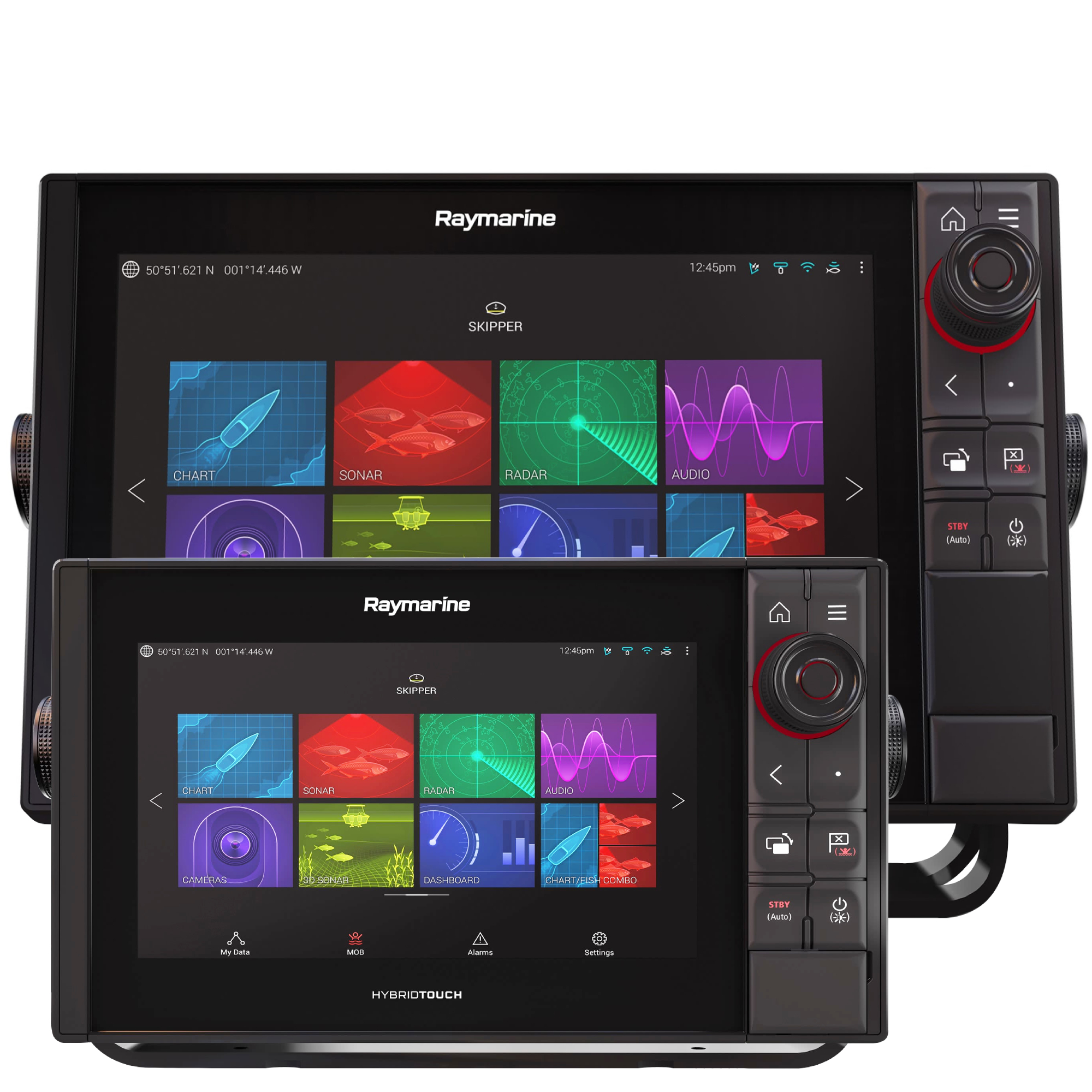 Axiom Pro совместим с эхолотами Raymarine CP470 и CP570 Professional CHIRP. Наслаждайтесь мощным выходом сонара до 2 киловатт и двумя независимыми трансиверами на CP570.